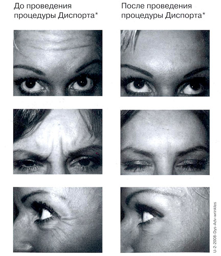 Так, Диспорт зареєстровано Міністерством охорони здоров'я України та дозволено до застосування в естетичній медицині на території України за свідченням "корекція мімічних зморшок".